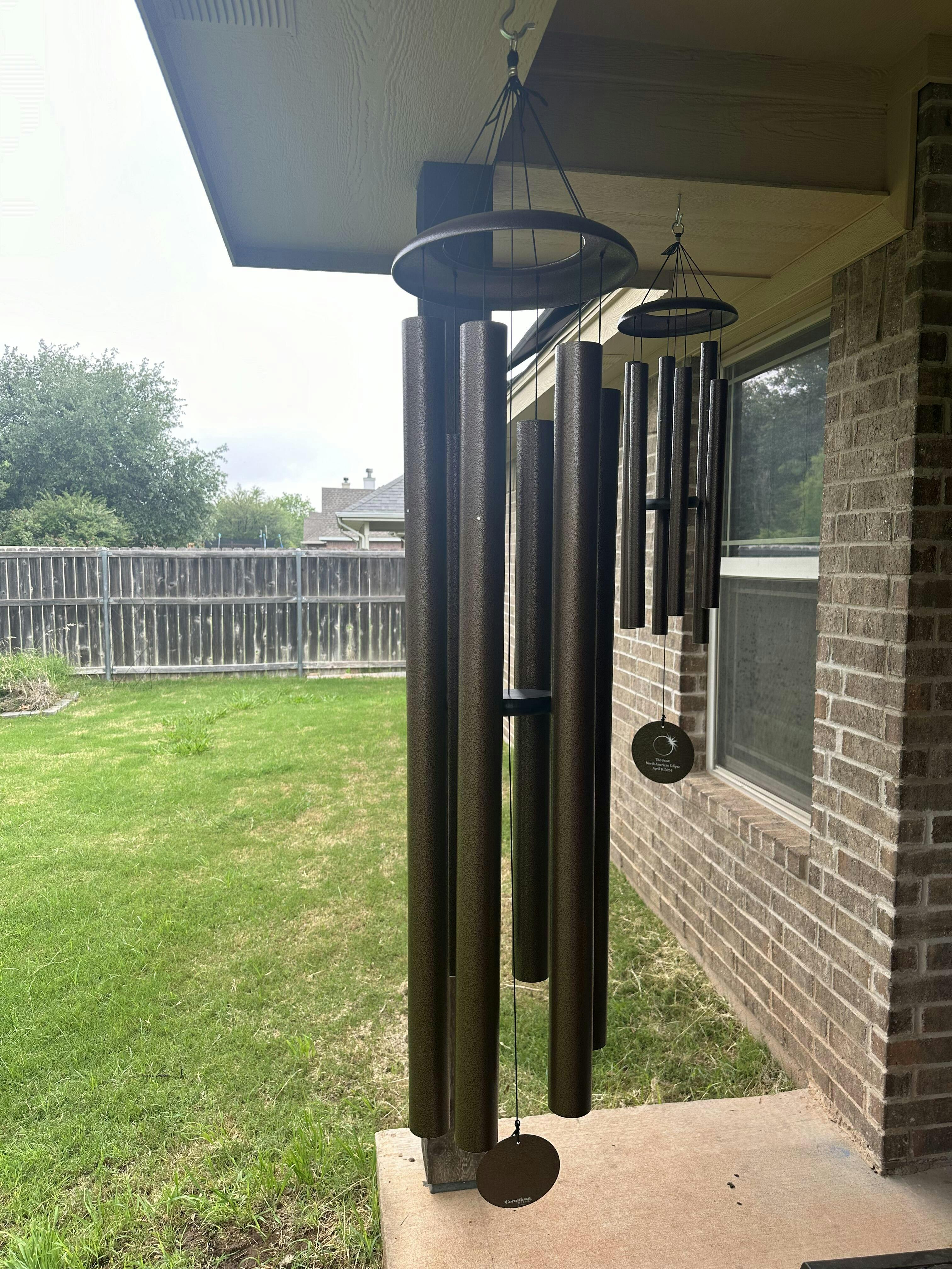 Each wind sail is engraved with a stunning image of the eclipse, a perfect reminder of this historic event. These chimes are tuned to the Lydian mode, which creates an atmosphere of enchantment and a moment of calm for the cosmos!